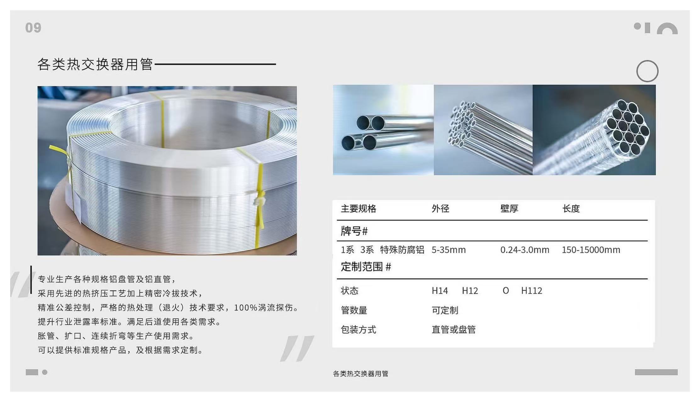 各类热交换器用铝盘管直管