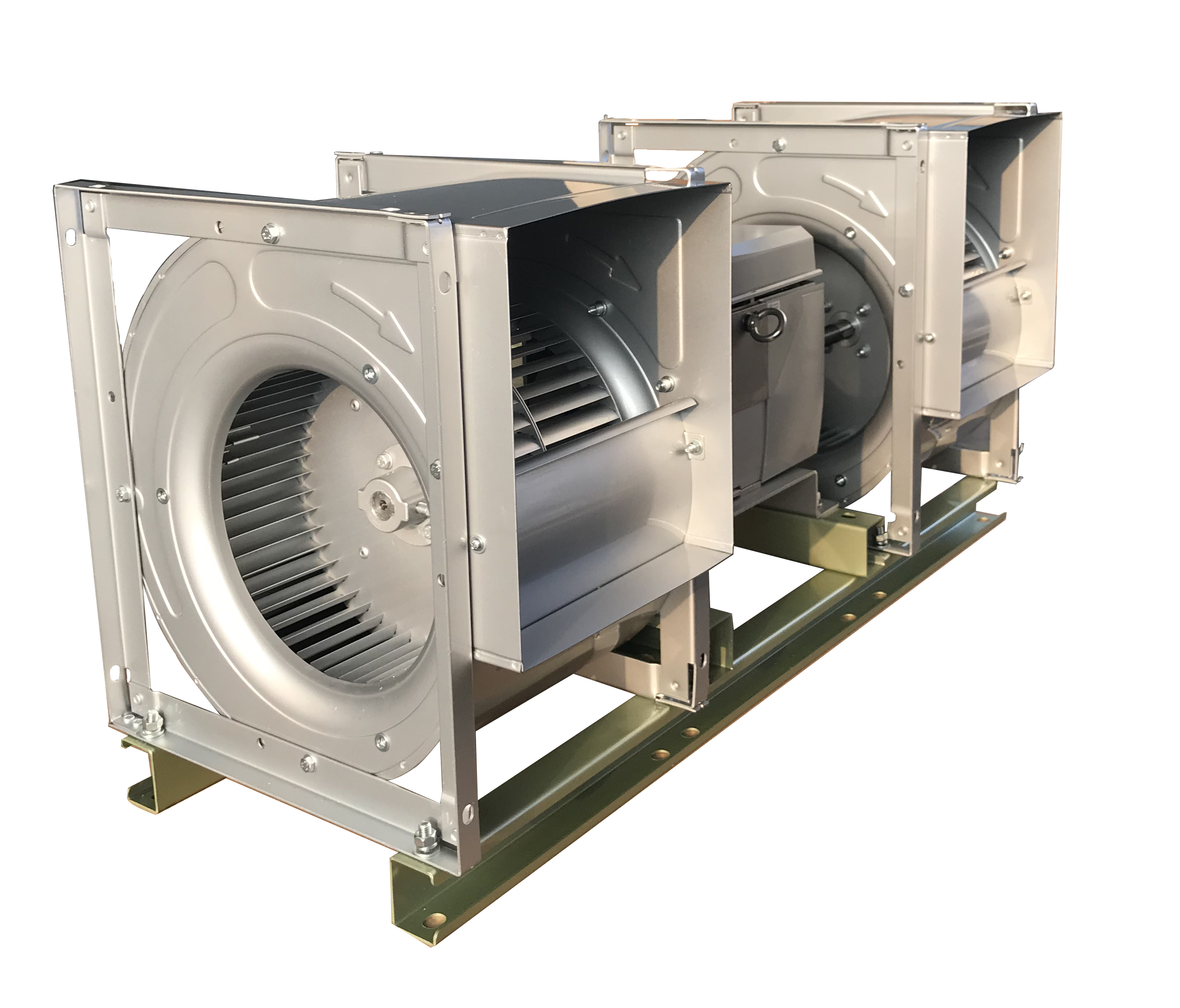 High-efficiency direct-driven centrifugal fan with a dual output shaft